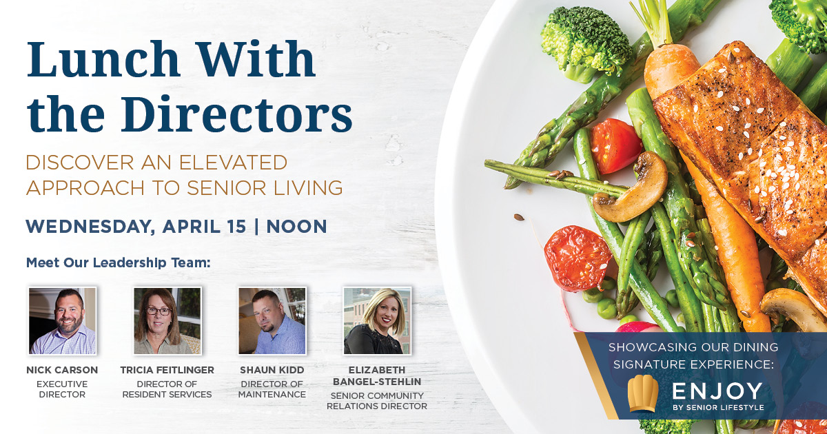 You’re invited to join us for a private luncheon and conversation with the leadership team of Seasons. Savor a delicious, chef-prepared meal as you get a taste of Enjoy, our dining Signature Experience, and learn how our community blends vibrant living with elevated hospitality, personalized care and experiences designed to empower you to live your life in your style.
